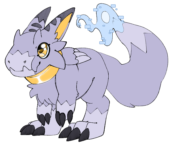 <Structure> [FREE]<An Evolution of Nullmon, seemingly built form the data of [DORUmon]. Little is known about this Digimon, and its absence from the Host Computer's Data is puzzling.><Scans of its data has shown a mix of different Digimon within its coding. [Lunamon], [Coronamon], and [Salamon] have traces interlaid on top of the [DORUmon] data. One individual has even had [Human] Data mixed in, however we are unsure how that came to be.>